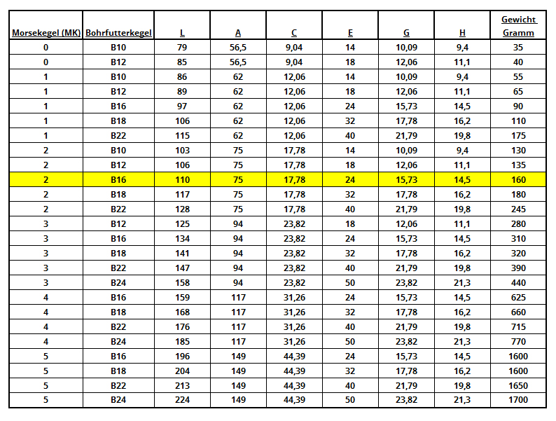 Bohrfutterdorn mit Morsekegel MK2 und Bohrfutterkegel B16
