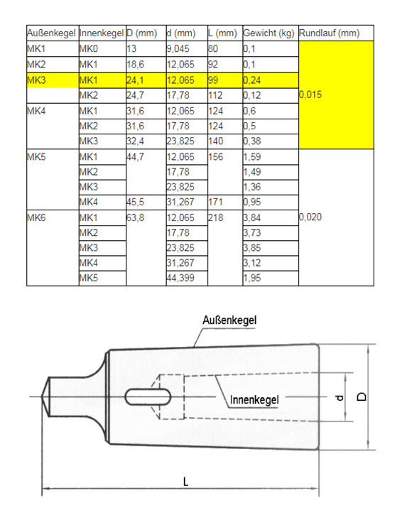 Morsekegel Reduzierhülse MK3 auf MK1