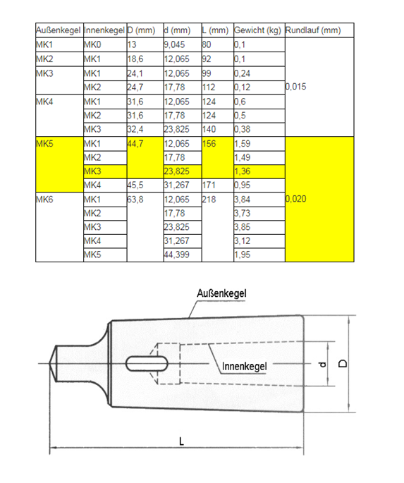 Morsekegel Reduzierhülse MK5 auf MK3